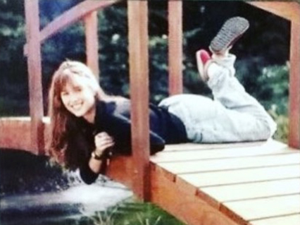 Class of 1996. Graduation photoshoot in a thrifted boho beaded top, my stepdad’s ripped-knee Levi’s, and Haflinger wool clogs.
